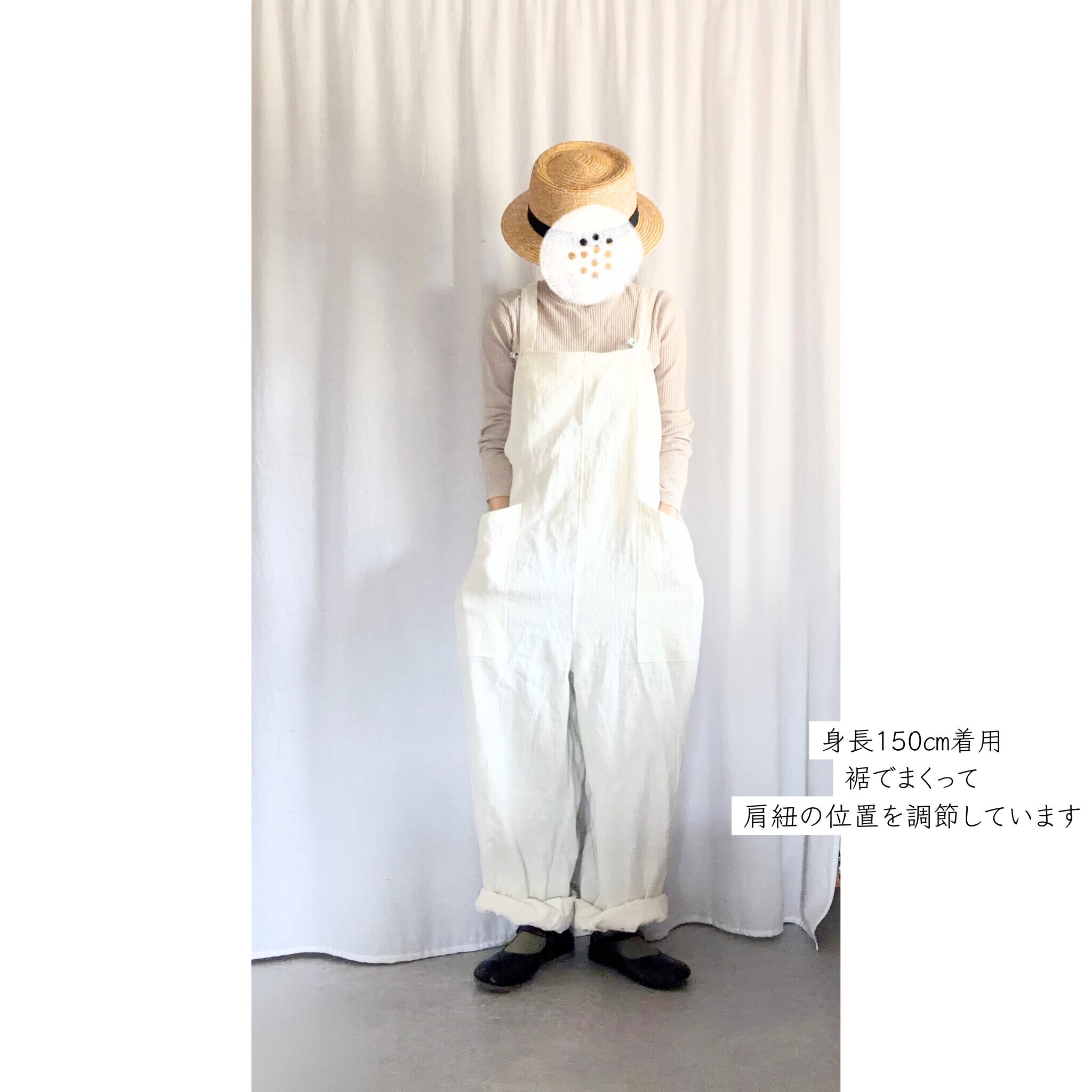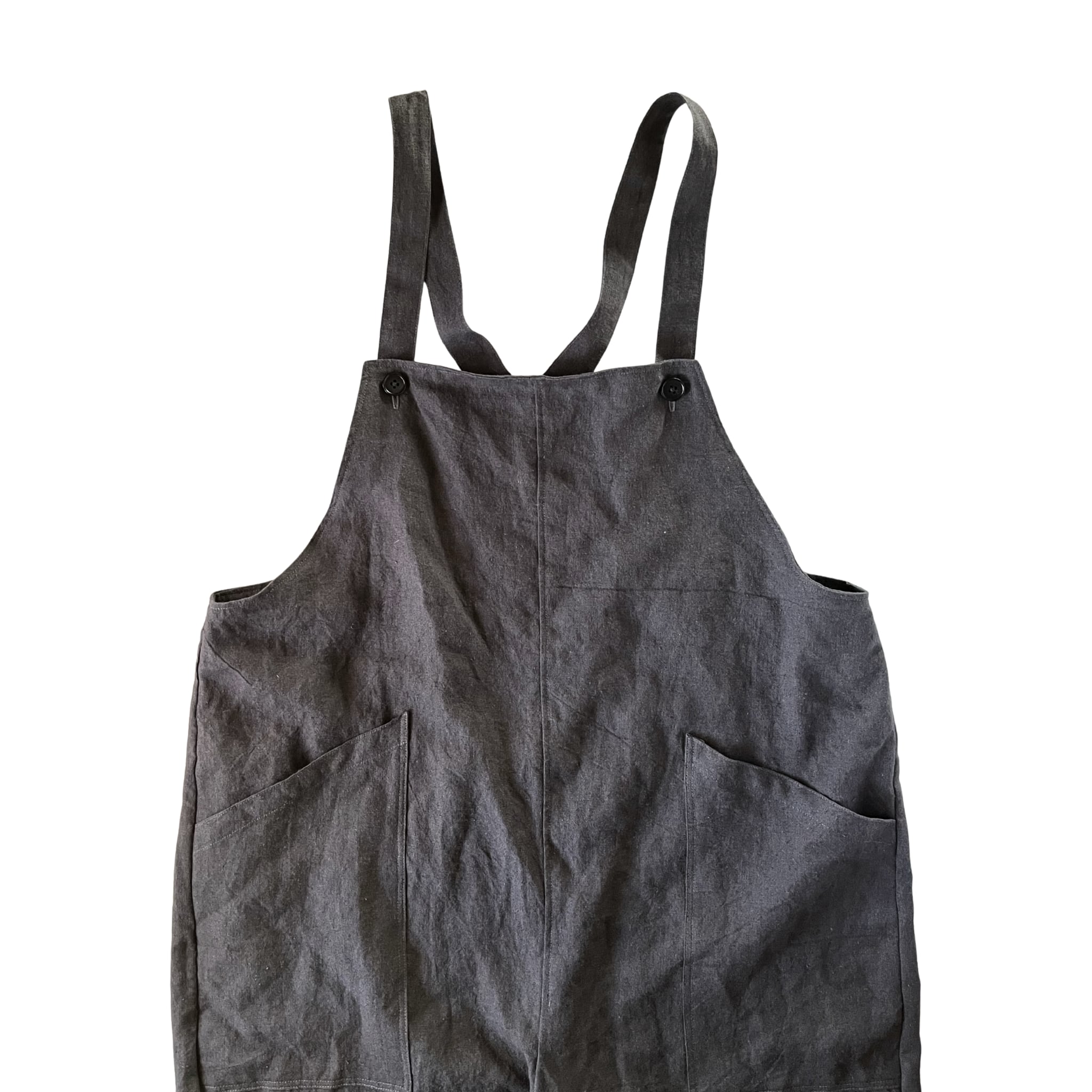 胸当て部分のホールにボタンを通して着るデザインとなっており