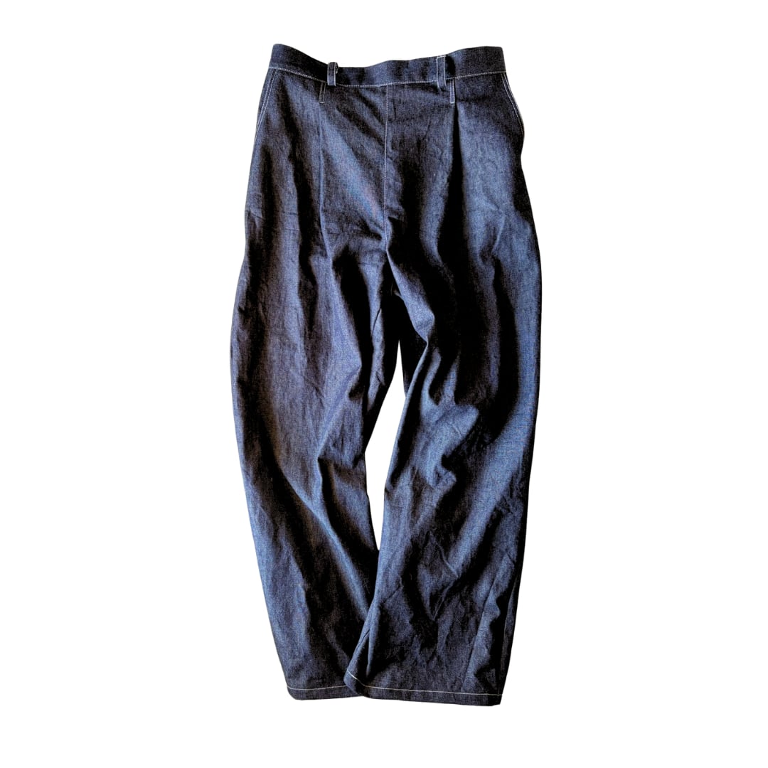 インディゴカラーのデニムに白のステッチをきかせた