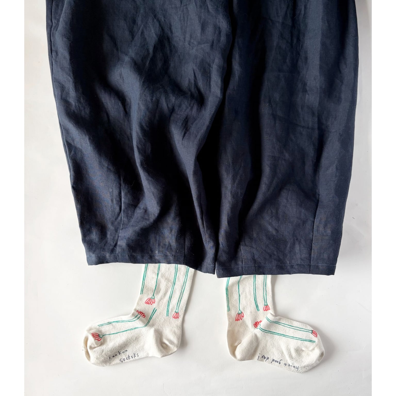 春から夏にかけて快適に履けられるようさらっとした中薄手リネンで製作しています。